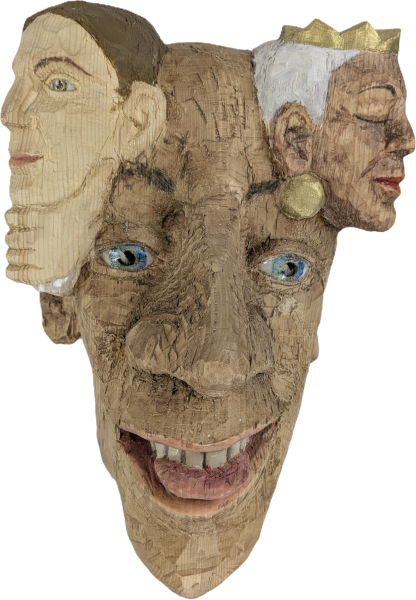 Geschmückter Kopf 3/7 2023, 60 x 40 x 30 cm, Fichte, Pigmente und Acrylbinder