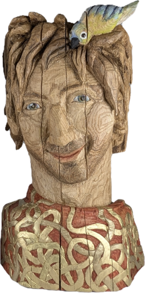 Relief weibl. Kopf 2024 19,5x20x3 cm Fichte bemalt